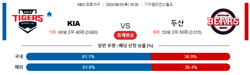 ※ 8월 1일 KIA 두산 분석글 ※